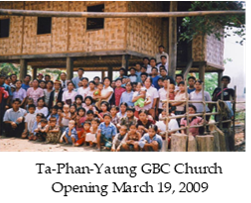 ထို့ကြောင့် ၂၀၀၉ ခုနှစ်အတွင်းရုပ်တုကိုးကွယ်သောသူများ အထဲမှလူ ၂၀ ခန့်ကယ် တင်ခြင်းသို့ ရောက်ရ ကြသည်။ ထို့ကဲ့သို့ ပြုတော်မူသော အဘဘုရား၏ ကျေးဇူးတော်ကို ချီးမွမ်း မိပါသည်။ ယုံကြည်သူများ၏ ဆုတောင်း ပေးခြင်း၊ အလှူငွေများ ပံ့ပိုးခြင်းများအတွက်လည်း ကျေးဇူးတင်ကြောင်း ဖေါ်ပြလိုပါသည်။